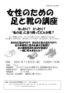 足と靴の悩みを分かち合いながら、一人一人の足の多様性に気づき、 「足に合う」靴の本当の意味を考えます。 悩みがスーッとラクになる足と靴のコツも学びます。 申込方法:エセナおおたホームページ内の専用フォームでお申し込みく […]