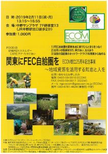 NPO法人エコ・コミュニケーションセンター(ECOM)創立25周年記念事業 Food:食、Energy:エネルギー、Care:ケア・たすけあい~関東にFEC自給圏を~地域資源を活用する知恵と人を~ ◆日時:2019年2月 […]