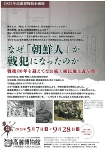 【開催案内】2025年5月7日~9月28日 高麗博物館企画展"なぜ「朝鮮人」が戦犯になったのか"
