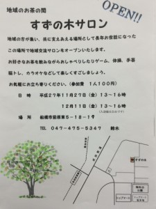 【終了】11/27(金)地域のお茶の間すずの木サロンオープン!
