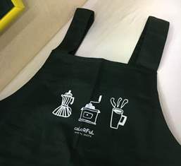アトリエからふるの作品が、まちの珈琲豆やさんのエプロンになりました♪