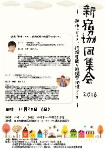 11月20日(日)新宿協同集会2016~都市における、持続可能な循環型地域づくり~都市における、持続可能な循環型地域づくり。昨年11月に開催した「新宿協同集会2015」で新宿区内の活動団体(居場所づくり)や実践者からの報 […]