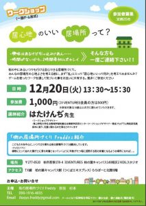 【終了】12/20(火)開催 ワークショップ『居心地のいい居場所って?』