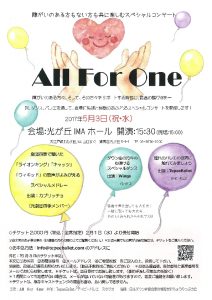 All For One ~障がいのある方もない方も共に楽しむ、スペシャルコンサート♪ 歌にダンスにバレエ!スペシャルコンサートで一緒に楽しみましょう♪客席で声をだしても大丈夫♪一緒に歌っても大丈夫♪みんなが楽しめたら、そ […]