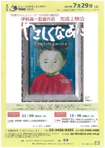 “奈緒ちゃんシリーズ”35年目の最新作伊勢真一監督作品『やさしくなあに~奈緒ちゃんと家族の35年~』完成上映会 7月29日(土)日比谷図書文化館B1F日比谷コンベンションホールにて◆プログラム1 11:00~(開場10: […]