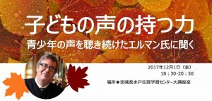 【終了】12/1(金)『子どもの声の持つ力 ~青少年の声を聴き続けたエルマン氏に聞く~』