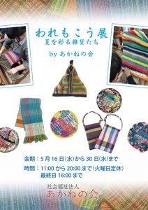 われもこう展~夏を彩る雑貨たち5月30日(水)まで♪社会福祉法人あかねの会のメンバーさん達が丁寧に織り上げた「さをり織り」の品々です。ぜひご覧ください。会場は『のんびる』にもご登場いただいている珈琲豆専門店ビーンズアクト […]