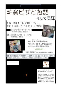 【終了】11/26(火)薪窯ピザと落語 そして浪江。