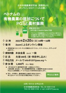 【終了】2月20日(日)オンラインセミナー「ベトナムの有機農業の現状―PGSと農村振興」