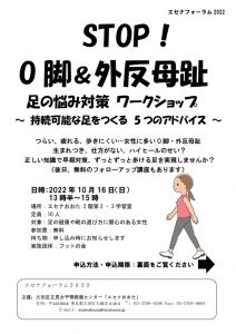 【終了】10月16日(日) STOP! O脚&外反母趾 足の悩み対策ワークショップ