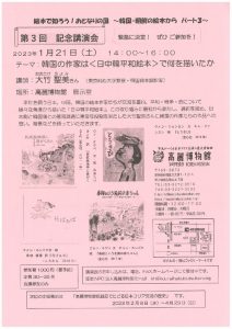 【終了】2023年1月21日(土)第3回記念公演会 韓国の作家は<日中韓平和絵本>で何を描いたか
